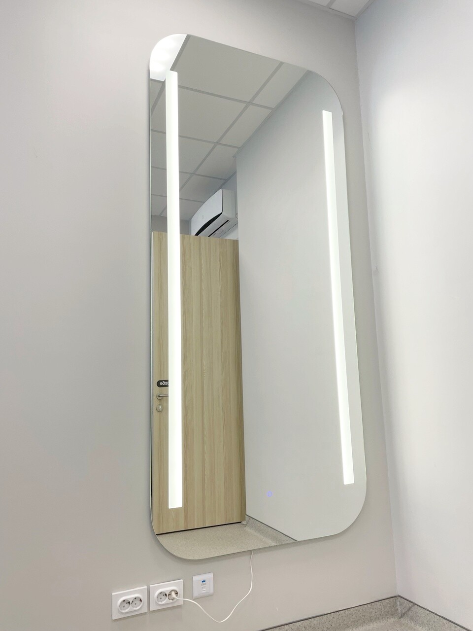 Все работы со стеклом и зеркалами выполняла наша компания. За это время мы смонтировали более 60 душевых, 6 офисных перегородок, 10 зеркал с полировкой и 1 с подсветкой.