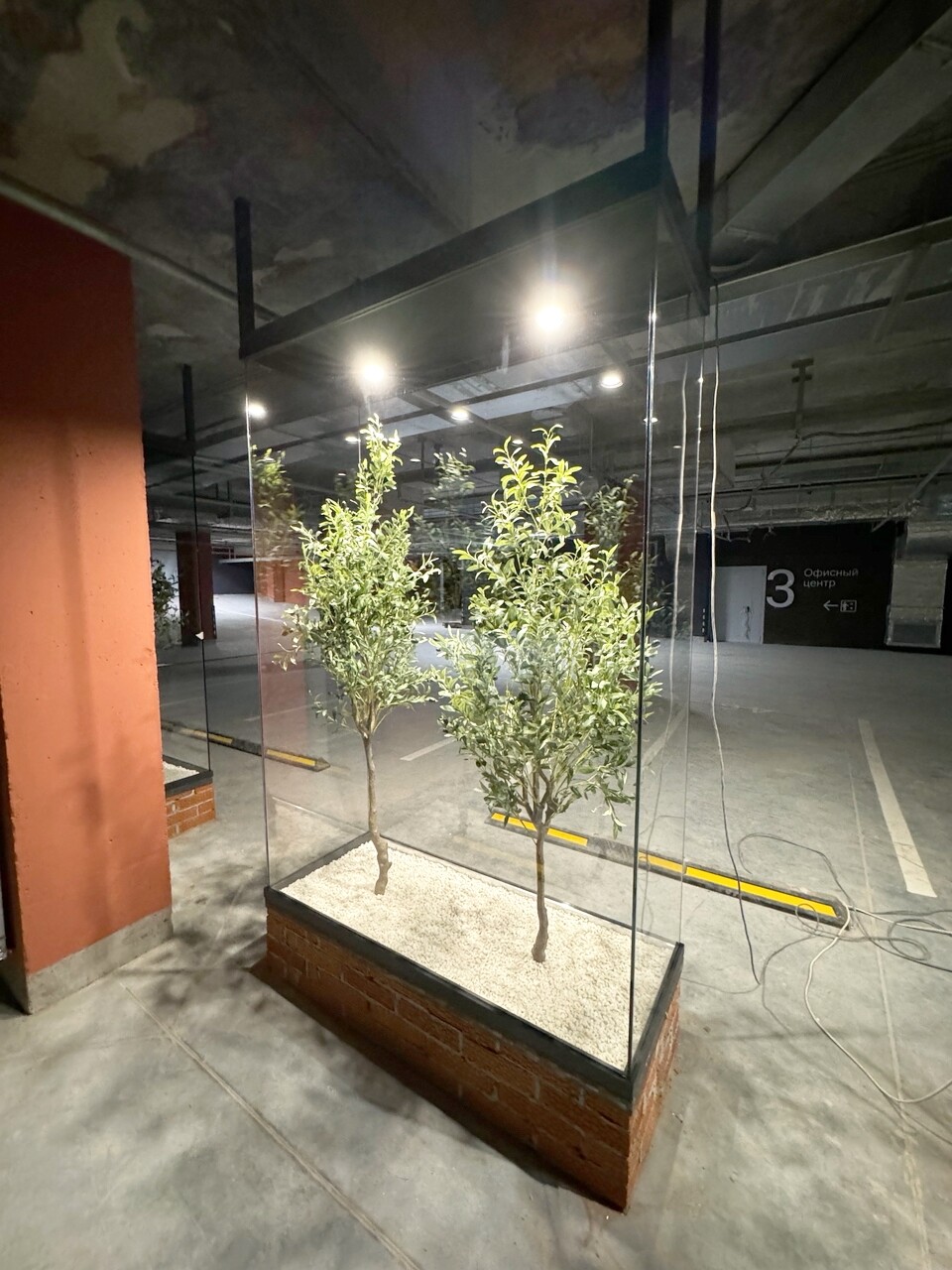 Стеклянные кубы из осветленного стекла с декорациями внутри. Мы выполнили проект конструкции, монтаж стекла и герметизацию стыков.